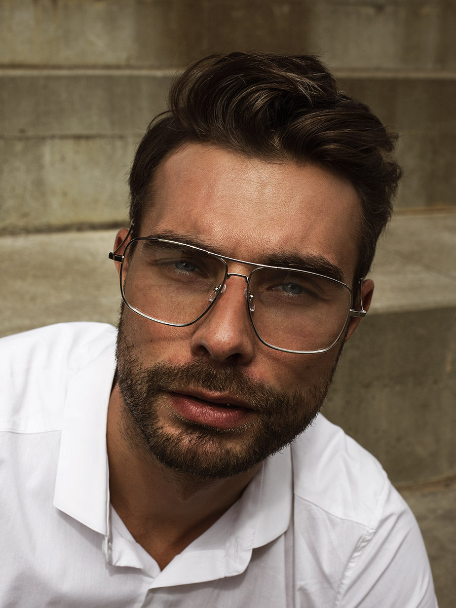 Brýle s čirými skly. Obroučky do stříbrna. Nedioptrické skla. Unisex styl. Díky svému vzhledu padnou každému a jsou vhodné pro street módu i business outfity. Materiál: 50% plast, 50% kov
